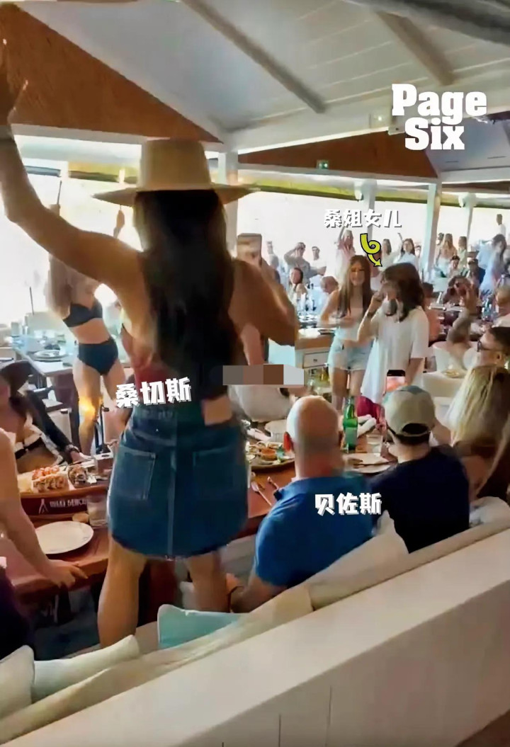 身穿蓝色保罗衫的贝佐斯也开心地为继女鼓起掌来!